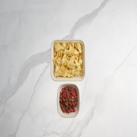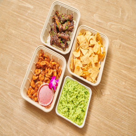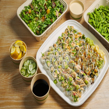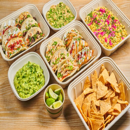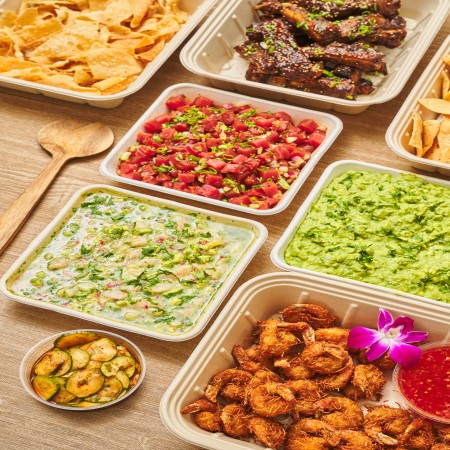 15 person minimum, you pick the party, your guests mix & match proteins, bases, toppings and sauce to make it their own
